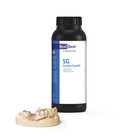 NextDent SG est une résine biocompatible de classe I, développée pour l’impression 3D de guides chirurgicaux destinés à la pose d’implants. Grâce à sa très grande précision, il est possible d’y insérer directement les bagues de forage après impression, ce qui garantit une précision optimale lors des interventions chirurgicales. Les propriétés de la résine NextDent SG restent stables même après l’utilisation de désinfectants. De plus, cette résine peut être stérilisée selon les protocoles standards d’autoclave, sans altération de sa stabilité dimensionnelle. NextDent SG peut ainsi être utilisée en toute sécurité dans un environnement opératoir